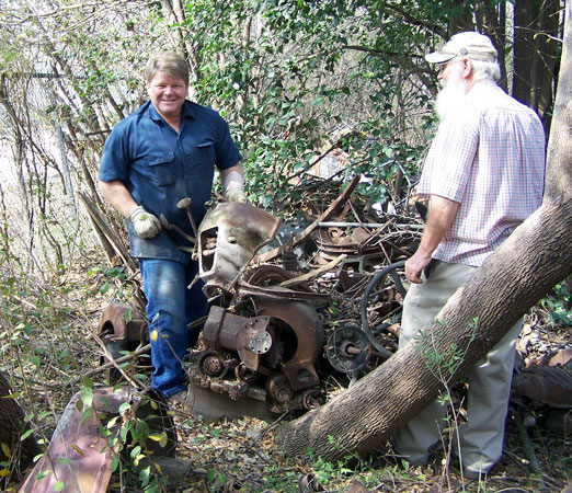 Daniel Bratcher & Gary Bethke rummaging through piles of random Model T parts at a San Antonio metal salvage yard, January 2013