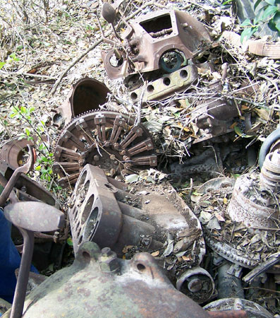 Just one of several piles of random Model T parts at a San Antonio metal salvage yard, January 2013