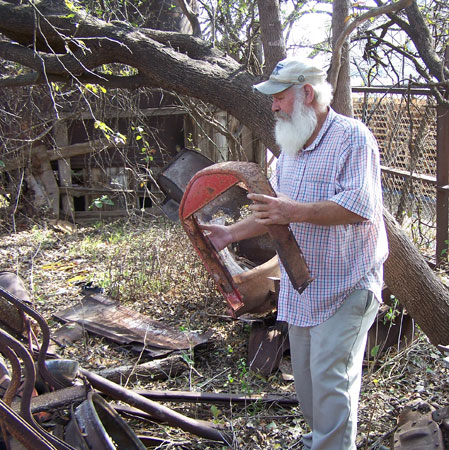 Gary Bethke with a possibly OK radiator shell at a San Antonio metal salvage yard, January 2013