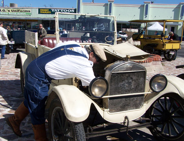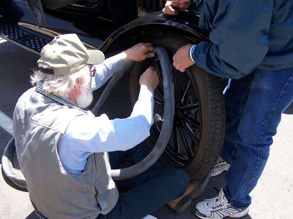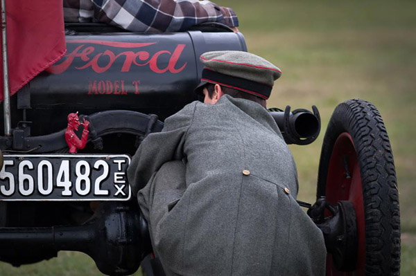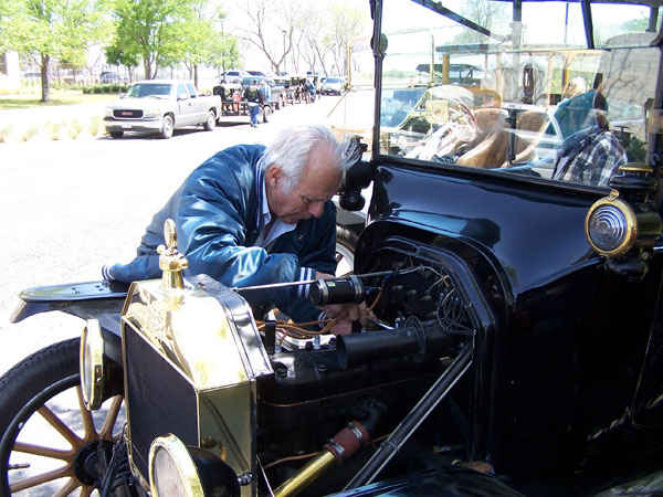 James Deatherage tinkering with his 1921 Ford Model T during the 2013 TFOT Wilson County tour