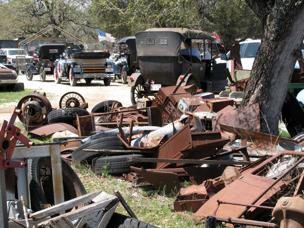Since you can't just wander into PEP Boys to find Model T parts, sometimes you just have to be prepared to wade through weeds and other nasty stuff to rummage through piles of random Model T parts wherever you can find them, in the hope of finding something still worth using - after some careful restoration - even though the parts might have been outside in the elements for decades, as was the case here at a neglected scrap metal yard in San Antonio in January 2013. In the end, T parts to the tune of $500 were acquired.