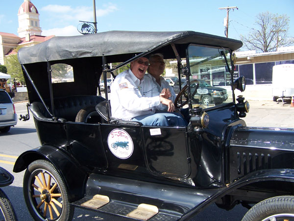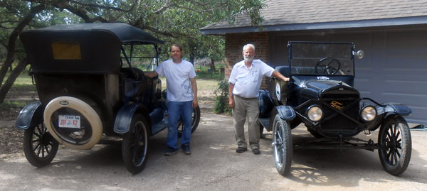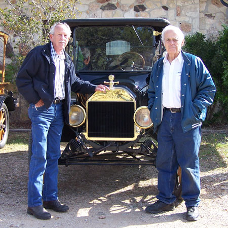 TFOT tour leader Tom Campbell, right, and Bandera Mayor Tom Clark, also a Model T owner, Bandera, April 2013