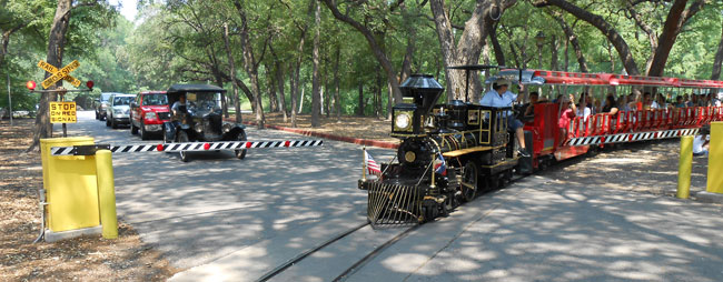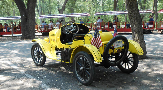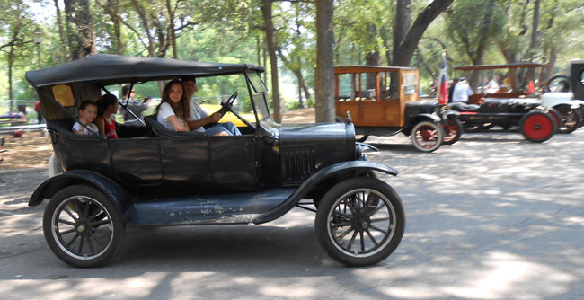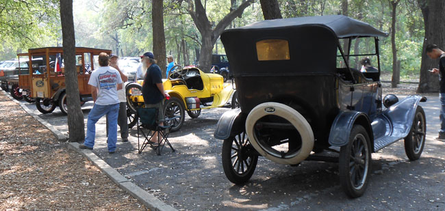 Model T waiting for the Brackenridge Eagle to pass at TFOT picnic in BBrackenridge Park, May 2013