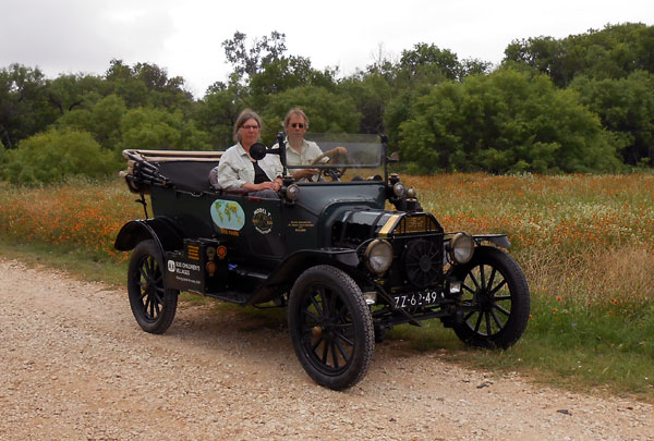 Dirk & Trudy Regter and their 1915 Ford Model T among Texas wild flowers, May 2013