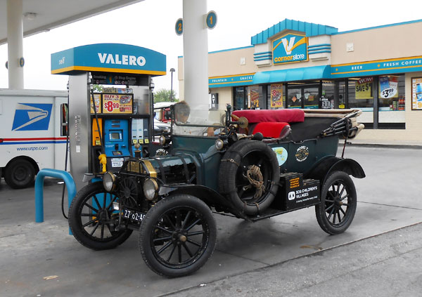 Dirk & Trudy Regter and their 1915 Ford Model T buying fuel in San Antonio, May 2013