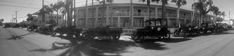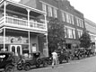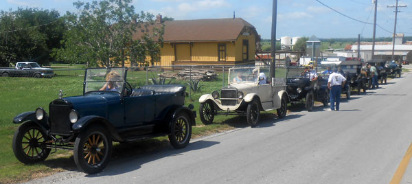 Ford Model Ts at the restored railroad station in Floresville during the 2013 TFOT Wilson County tour