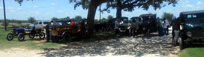 TFOT Model Ts and 29 Packard at the Neunhoffer Ranch near Kerrville, April 2013