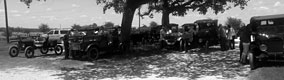 Ford Model Ts desperately seeking shade at the Rhew Peach Orchard during the 2013 TFOT Wilson County tour