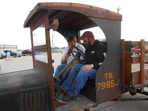 DuWayne Headrick driving his 1926 TT truck past the fueling station at the San Antonio Raceway drag strip, March 2016
