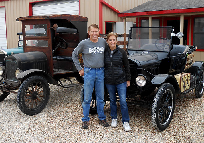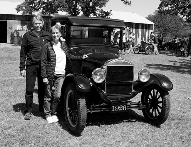 Mike and Jennifer Mackechney with June Prade's 1924 Ford Model T, November 2018