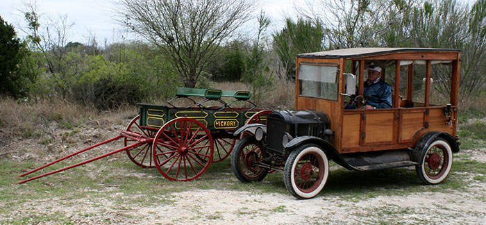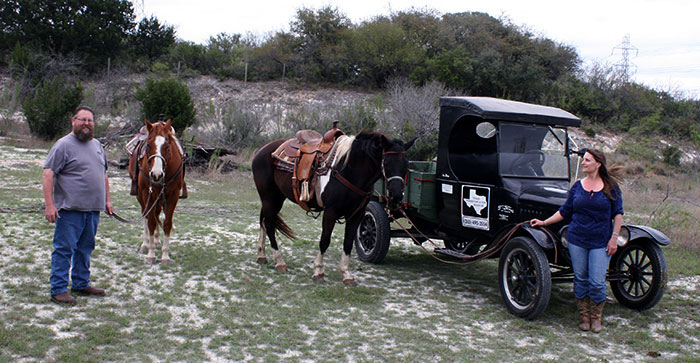 1924 Ford Model TT and horses in a local history documentary at the texas Transportation Museum, March 2018