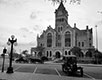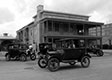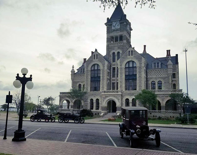 Ford Model Ts at the Victoria County court house during the Victoria Tour, March 2018