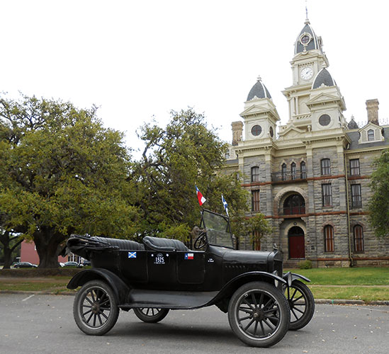 Ford Model T at the Goliad County court house in Goliad during the Victoria Tour, March 2018