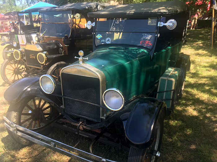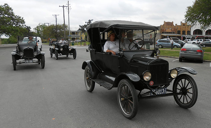 Ford Model Ts at an event in Boerne, June 2018