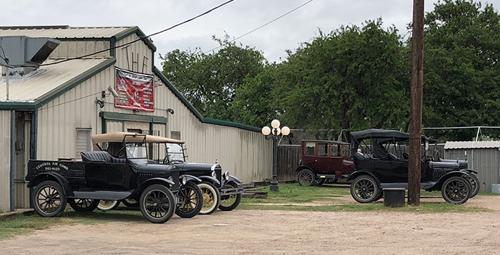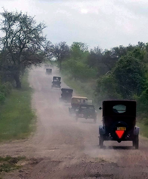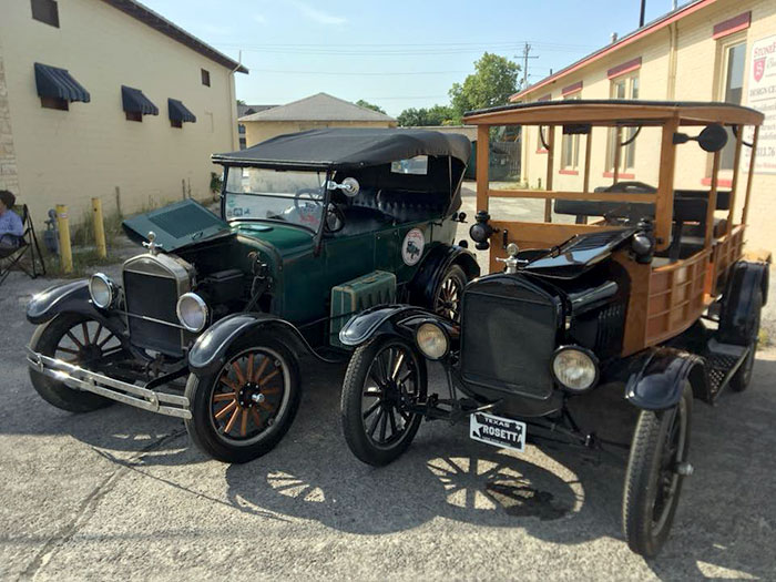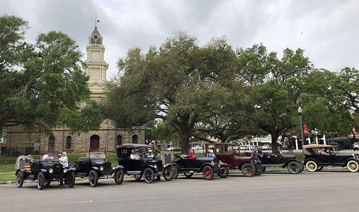 Ford Model Ts in Goliad during the Victoria Tour, March 2018