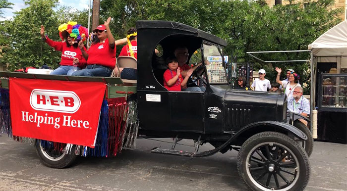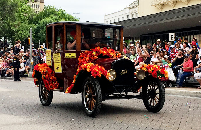 Ford Model T runabout belonging to the Texas Transportation Museum in the King WIlliam parade, April 2018