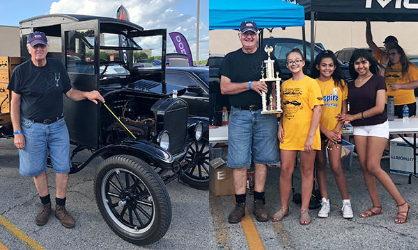 Ronny Bitterly with his award for his 1926 Ford Model T at the Shriner charity car show in San Antonio, May 2018