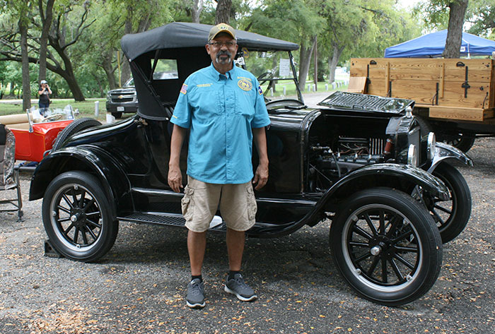Moses Mendoza, president of the Rio Grande Valley chapter of the Antique Automobile Club of America with his 1926 Ford Model T runabout at the Bexar County Sheriff's car show, September 2018