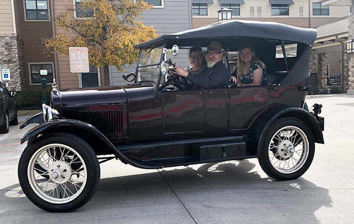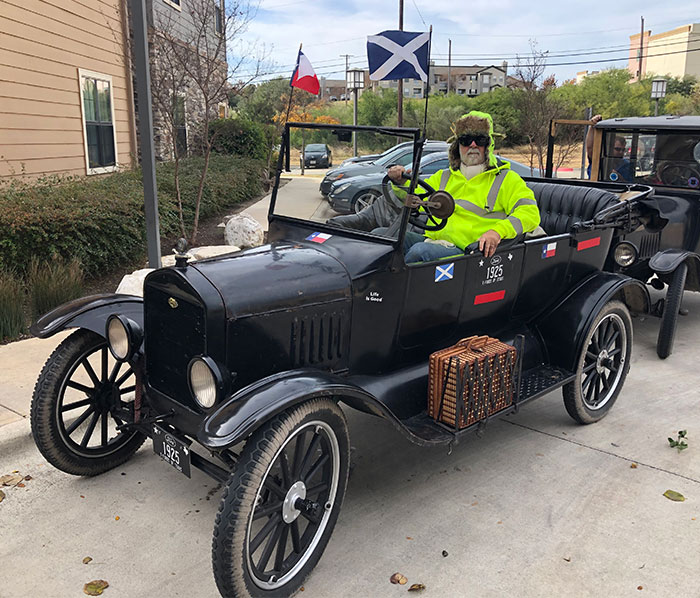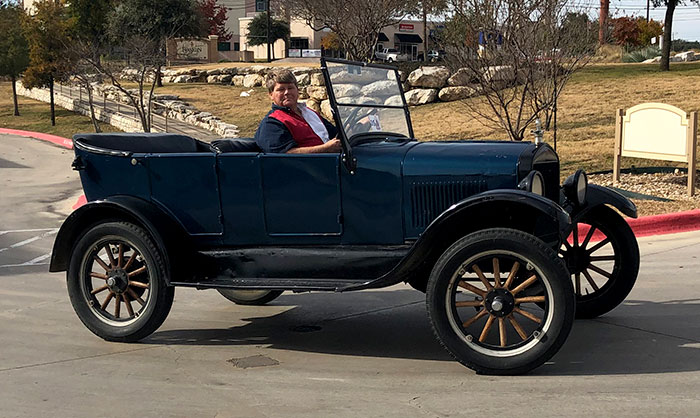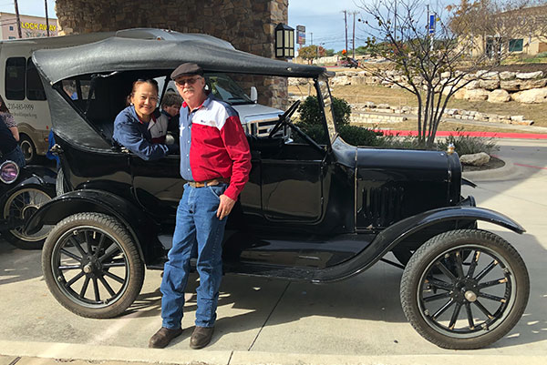 Joan daily with her 1926 Ford Model T before a parade in San Antonio, December 2018