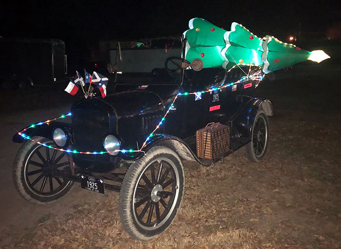 1926 Ford Model T belonging to John and Joan Daily at a Christmas party in San Antonio, December 2018