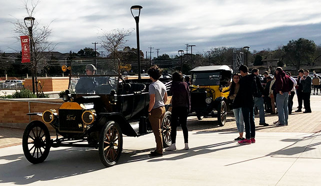 These six students invited three Ford Model Ts to LEE high school in San Antonio, to be part of their STEM project presentation, December 2018