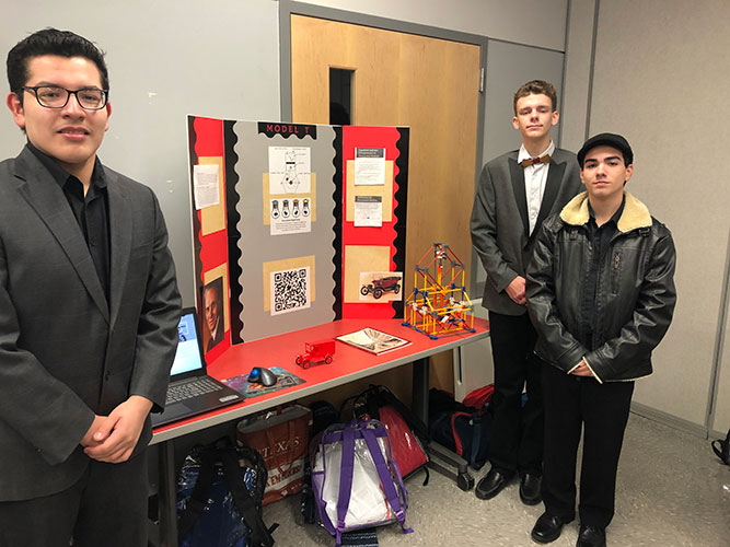 Three of the six students who chose to study the Ford Model T, at LEE high school in San Antonio, for their STEM project presentation, December 2018