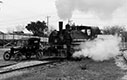 1925 Ford Model T touring car belonging to hugh Hemphill about to get a steam bath from a 1925 Baldwin steam locomotive at the Texas Transportation Museum