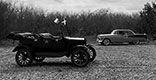 Hugh Hemphill's 1925 Ford Model T and a 1955 Chevy taking part in a local history documentary at the texas Transportation Museum, March 2018