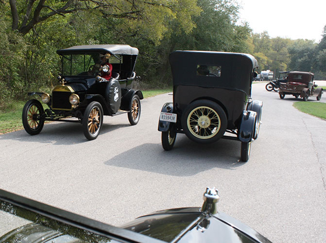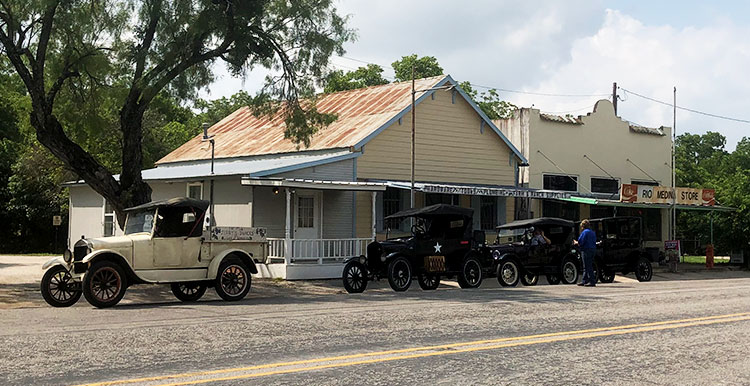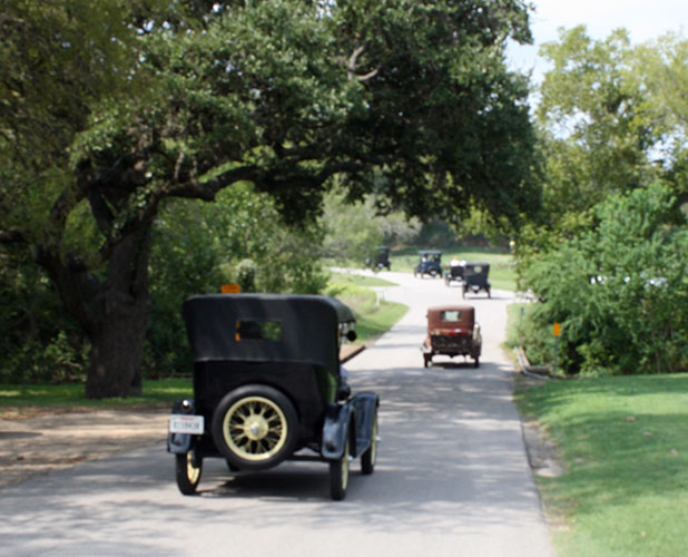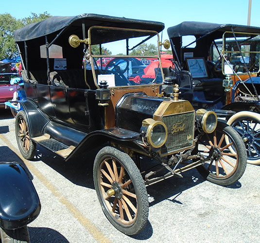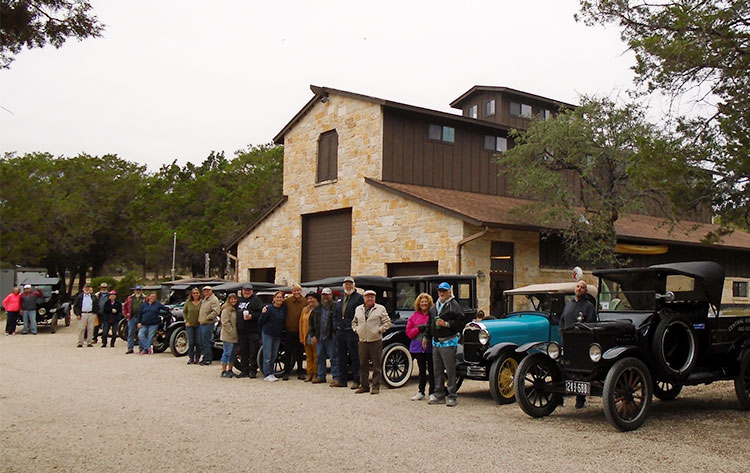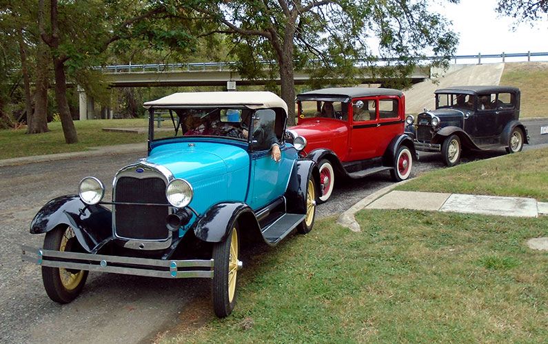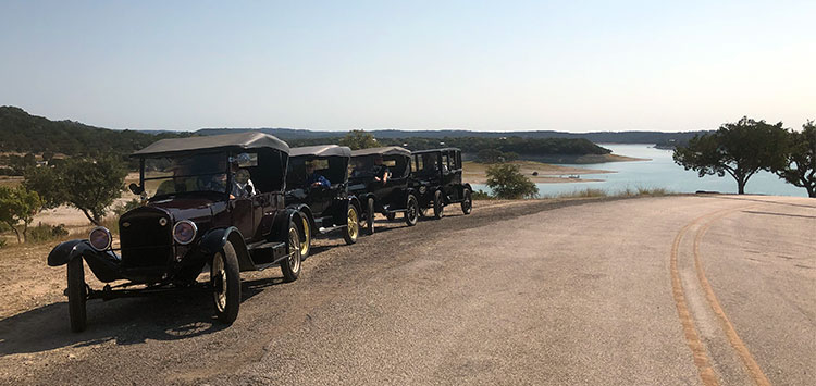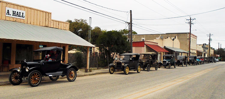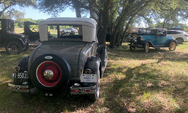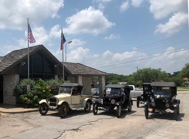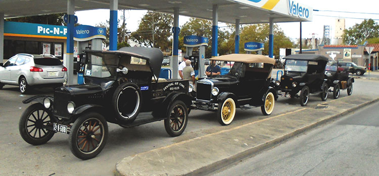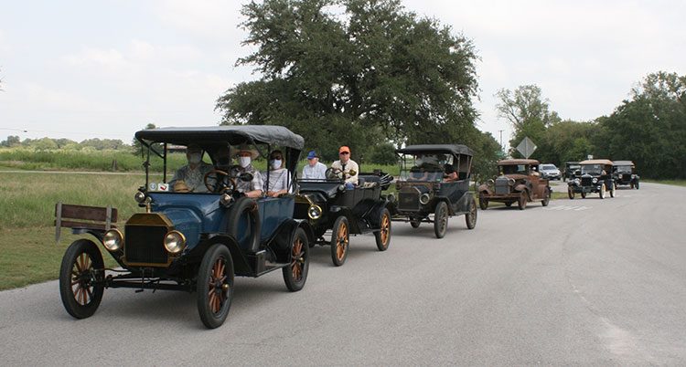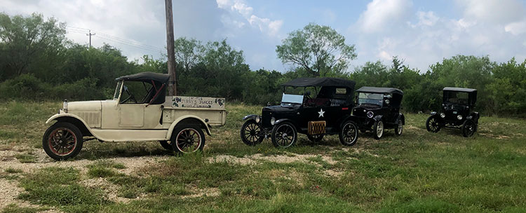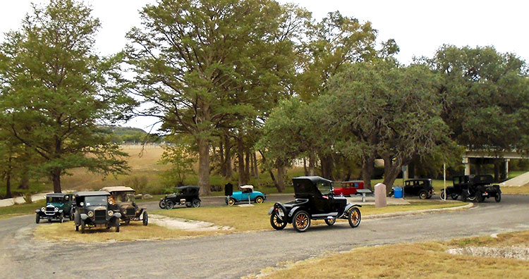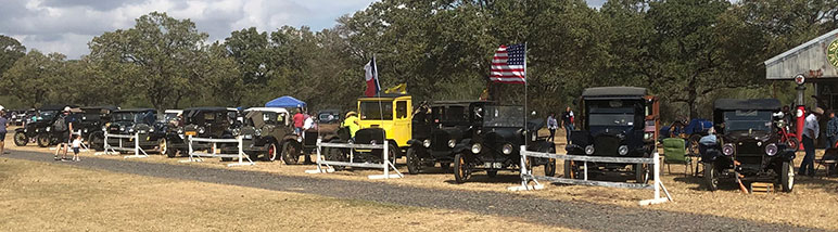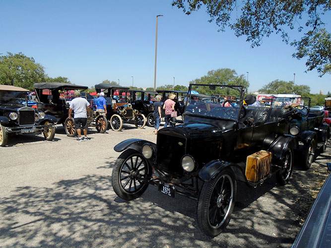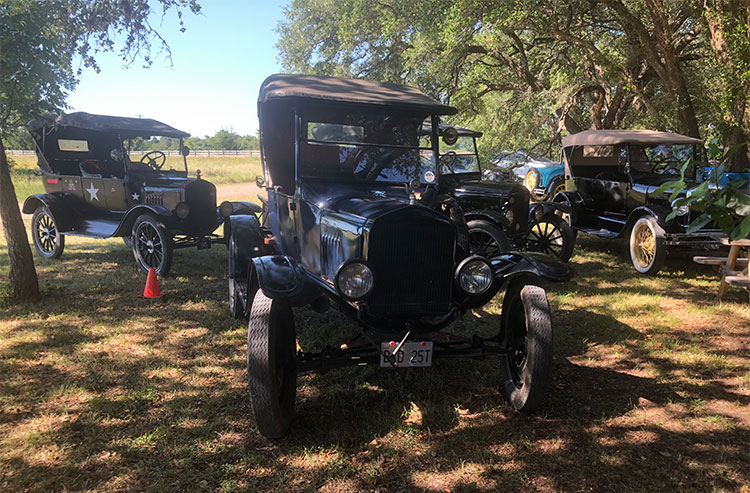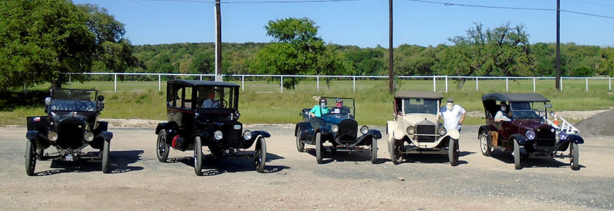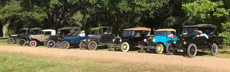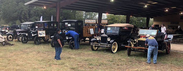 Some of the eighteen Ford Model Ts that took part in the Austin T club led tour from Martindale to Lockhart State Park, September 2020