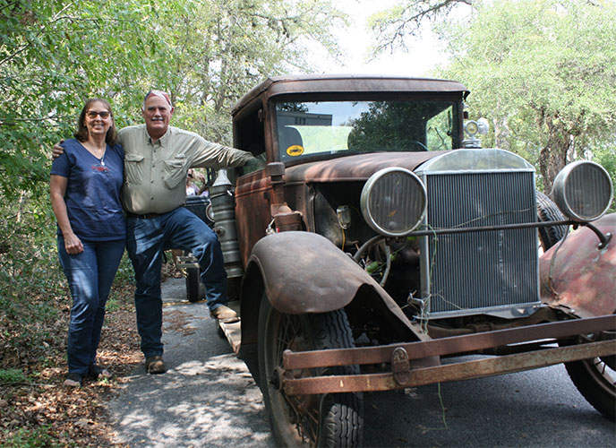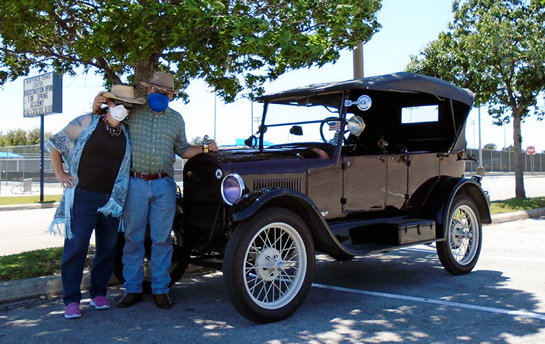 John and Joan Daily in their 1926 Ford Model T, Fun run to Medina Lake, October 2020