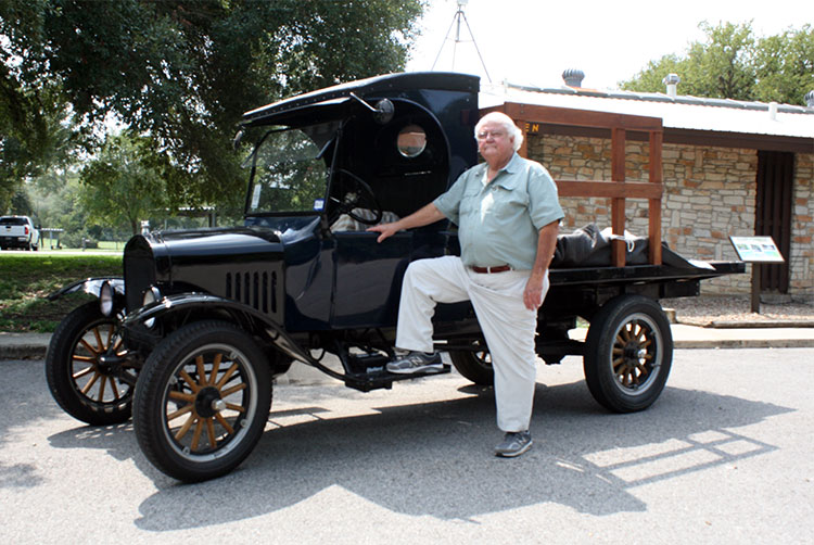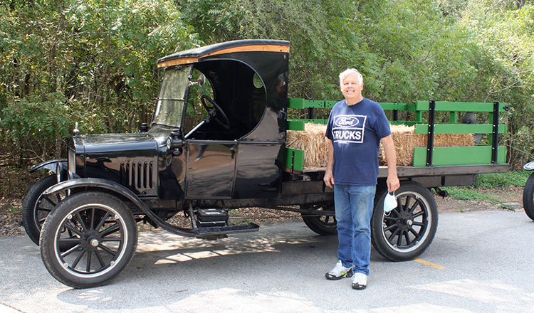 Sonny House with his Ford Model TT truck during the Austin T club led tour from Martindale to Lockhart State Park, September 2020