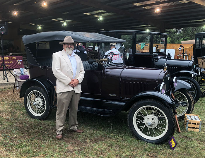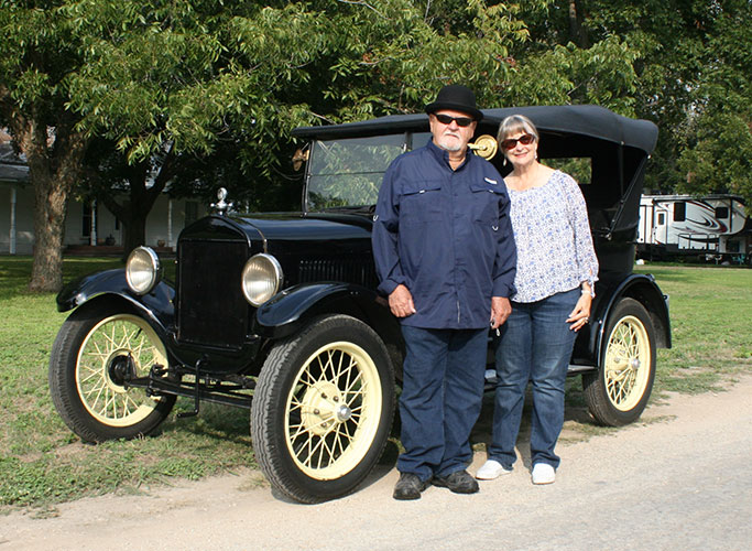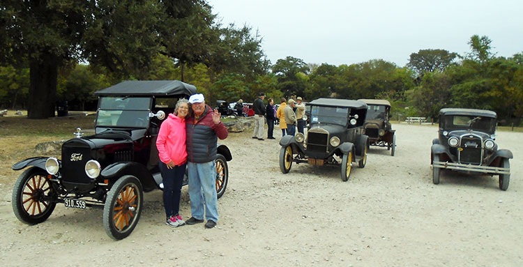 Laurie and James Deatherage during the Austin T club led tour from Martindale to Lockhart State Park, September 2020