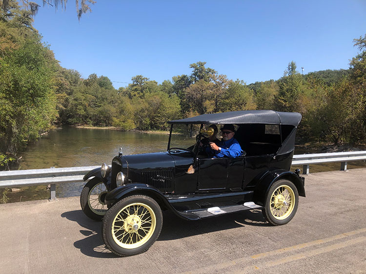 Steve Estevez in his 1915 Ford Model T during the Austin T club led tour from Martindale to Lockhart State Park, September 2020