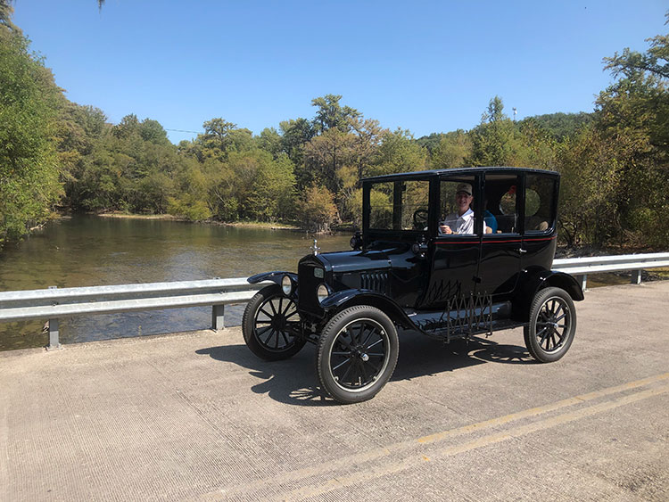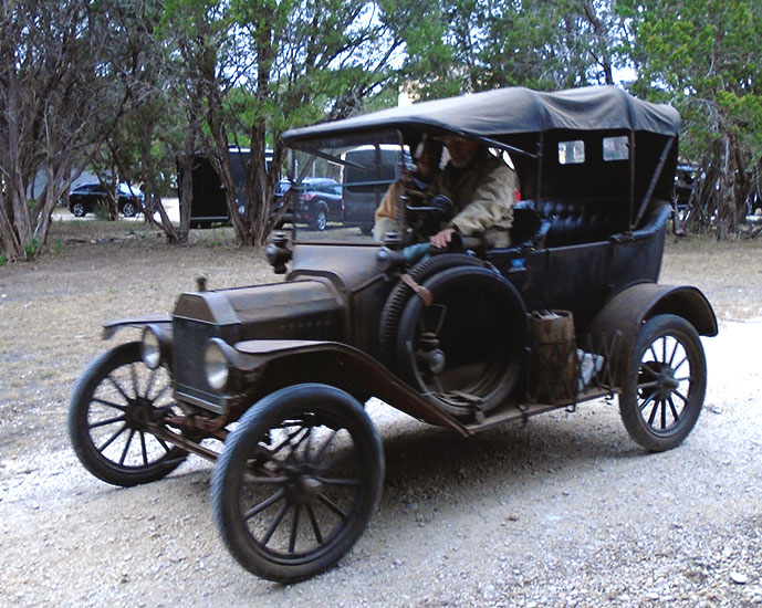 John Olfers and Joni Smith in in their 1925 Ford Model T, Fun run to Medina Lake, October 2020