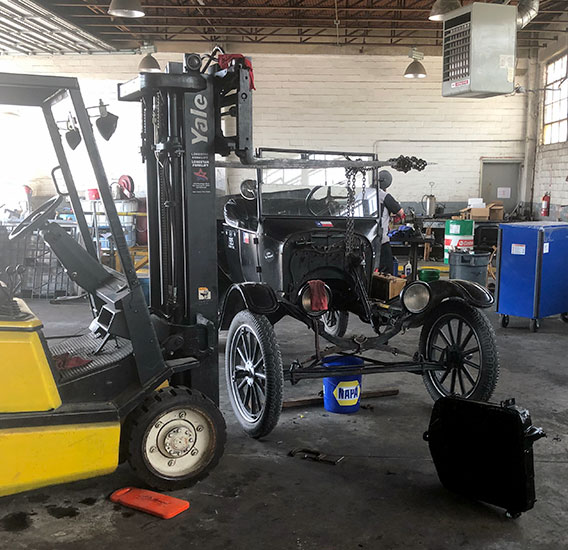 Repair work on Hugh Hemphill's 1925 Ford Model T, April 2020