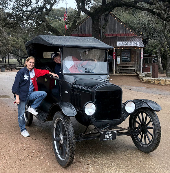 Kathy and Dave Tagart in Luckenbach, Hill Country Tour, February 2021