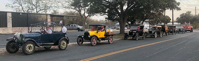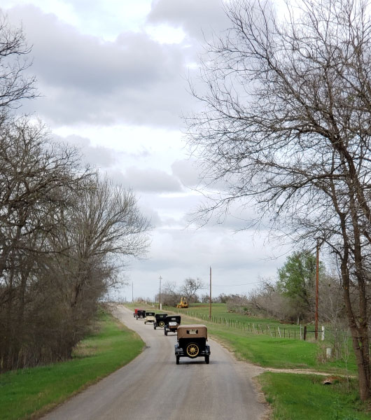 Ford Model Ts heading back to Boerne, Hill Country Tour, February 2021