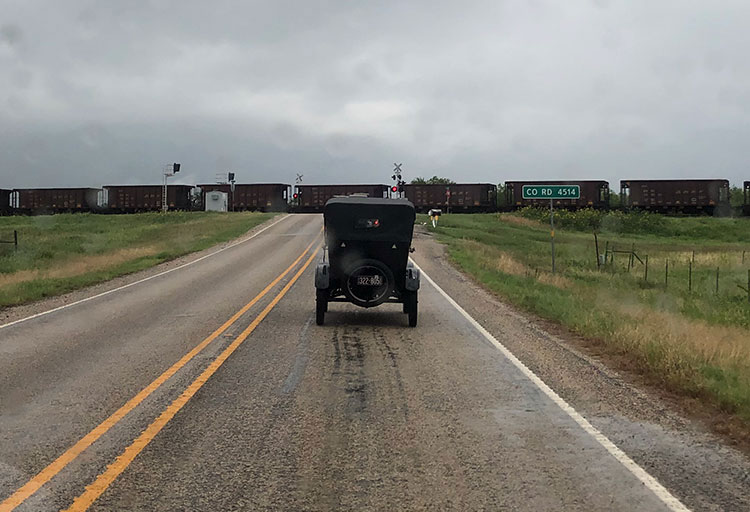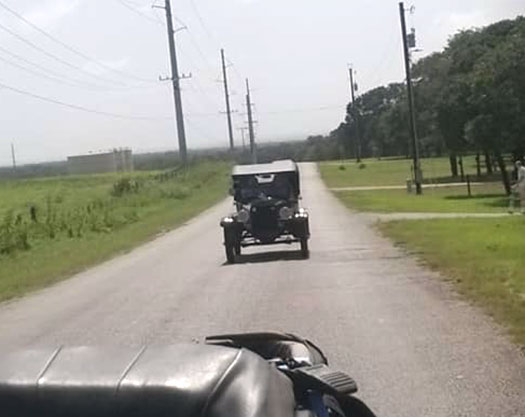TxDOT employee Harvey Ehler went above and beyond on his day off to bring gas to this stranded Ford Model T en route to in Halletsville, Texas, October 2021