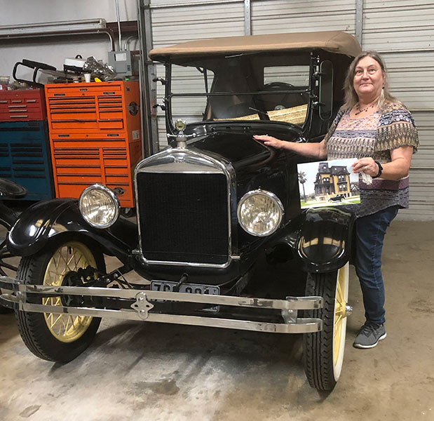 Laura Bitterly with her Eleanor, the name she gave to her 1926 Ford Model T touring car, and the Spring 2021 edition of the MTFCI (Model T Ford Club International) magazine, May 2021
