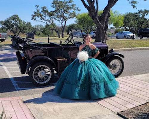 John Daily's 1926 Ford Model T touring car at a quinceaƱera party, September 2021