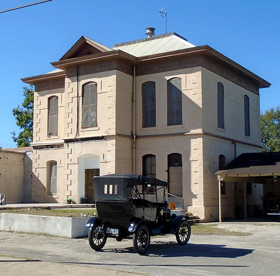 Ford Model T at the old Lavaca County jail, now a museum, in Halletsville, Texas, October 2021