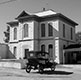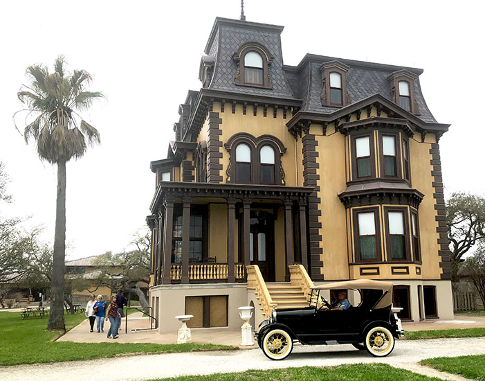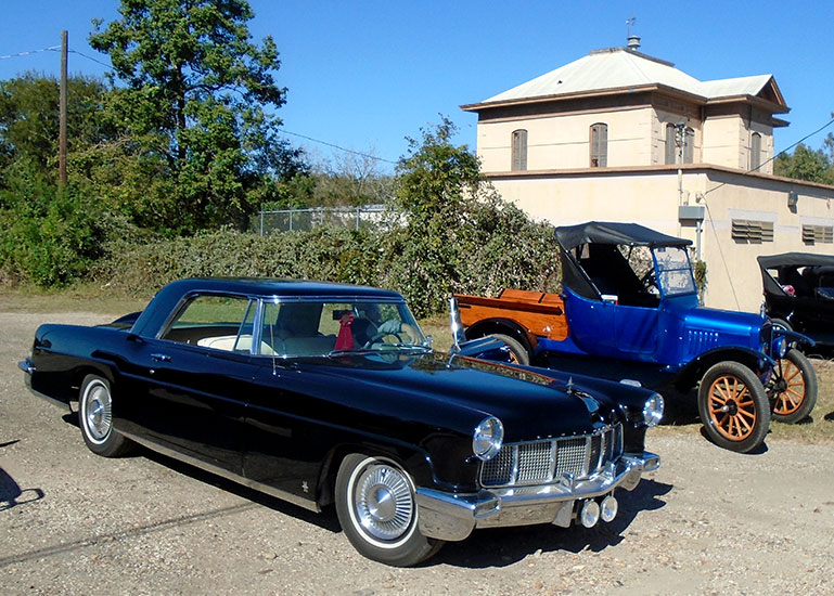 Classic Lincoln and Ford Model T at the old Lavaca County jail, now a museum, in Halletsville, Texas, October 2021