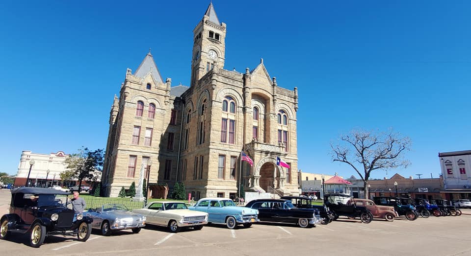 There was a wide variety of vehicles on this tour. This snap was taken at the Lavaca County court house in Halletsville, Texas, October 2021