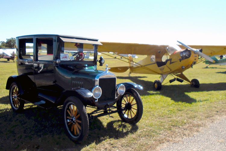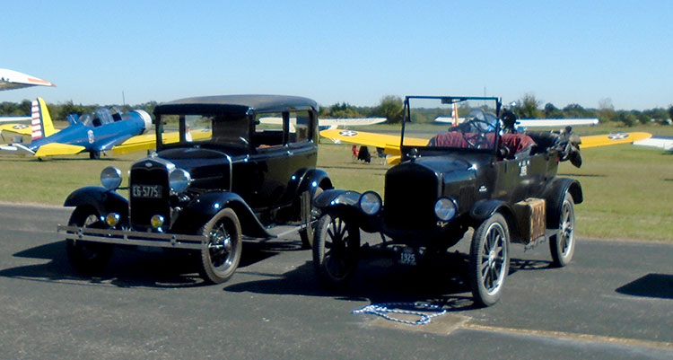 A Nash and two Ford Model Ts at the airport in Halletsville, Texas, October 2021