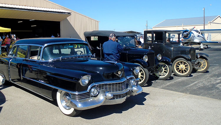 Mixture of classic vehicles at the airport in Halletsville, Texas, October 2021