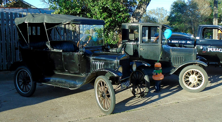 Ford Model Ts at a "Trunk or Treat" event in Schulenburg, Texas, October 2021