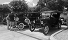 Model Ts outside the restaurant at lunch time during the Hot Wells cruise, July 2021