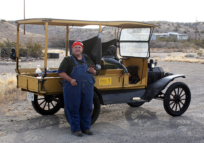 Anton Hajek with his 1914 Ford Model T depot hack during the Big Bend tour, February 2020