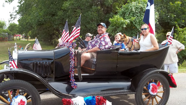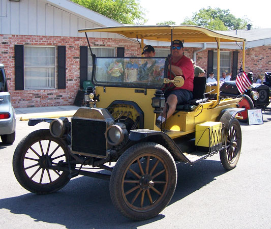 Anton Hajek in his 1914 Model T depot hack at a parade in Bandera, Texas
