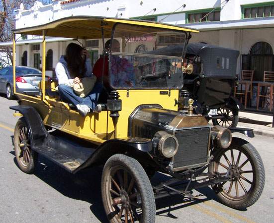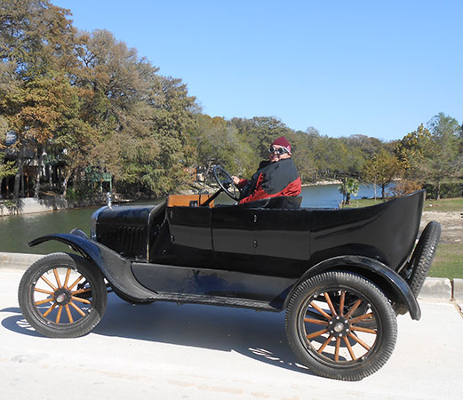 Anton Hajek in his 1914 Model T depot hack at the Alamo